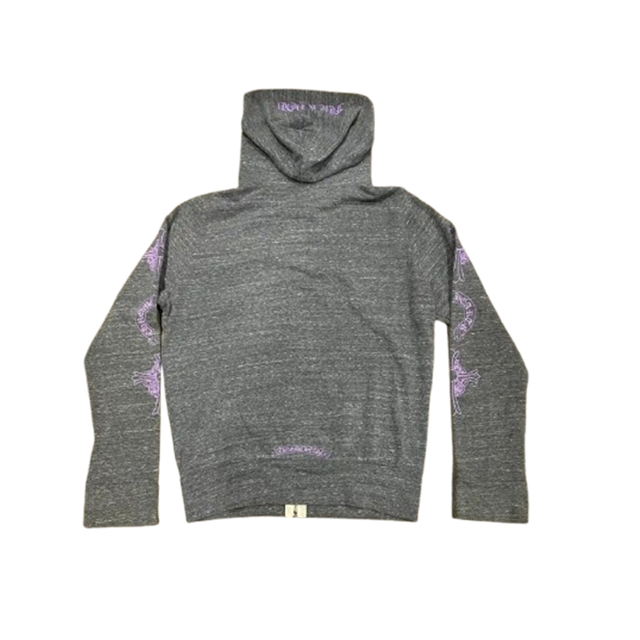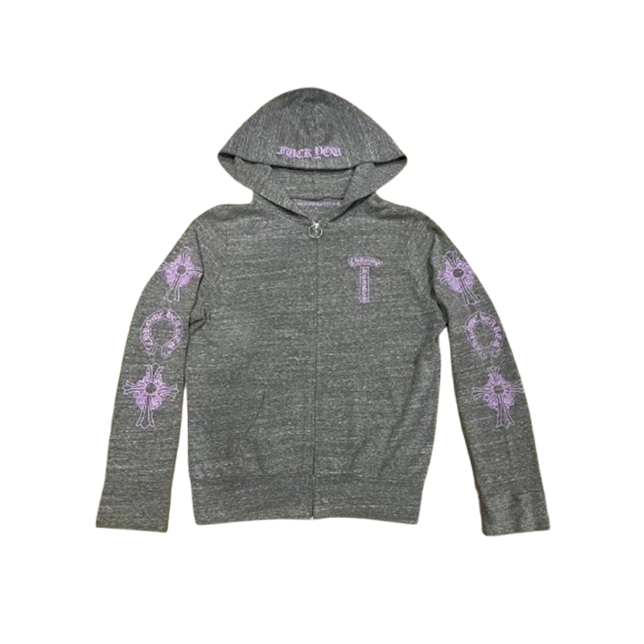 - Stay dry and warm with this RARE Chrome Hearts Floral Cross Pink Logo Zip Up Grey Hoodie, which features moisture-wicking technology.